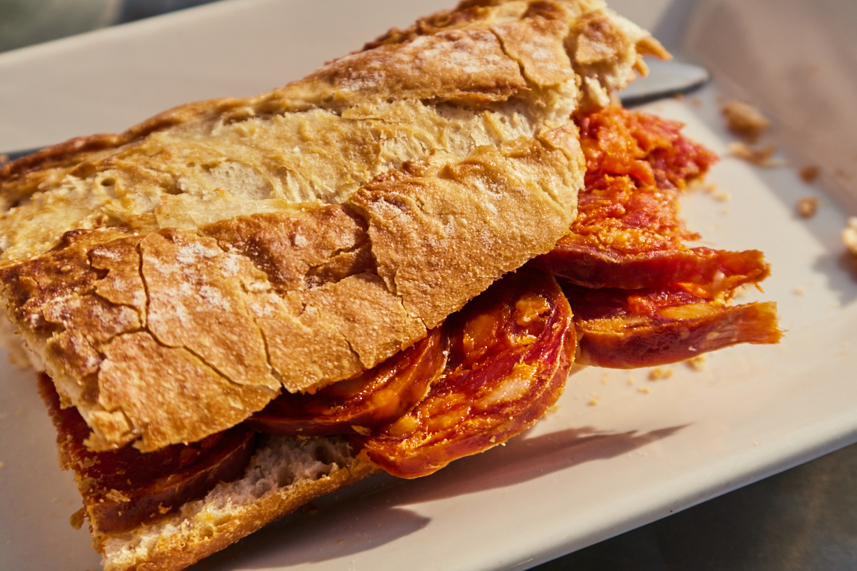 샌드위치 답게 빵 사이에 잘 썰린 초리조가 들어가 있다.